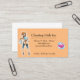 Peach Cartoon Girl Cleaning Service business cards.