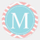 Customise this vibrant peach and white chevron pattern and bright blue monogram design with your initial.