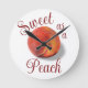 Show your love for summer with this peach theme clock. This velvety, sweet peach design features warm and bright tones of blush, scarlet, amber, coral and lilac. Personalise by changing or removing the text. I created this pattern from an image in my original acrylic painting.