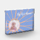 The design features a baby picture in the centre disc of a line drawing of a peach daisy flower, presented on a rock blue background. The script typography which reads "My life bloom!" is customisable. Personalise this item by adding your baby's photo and, should you wish to, amending the title as your heart desires.