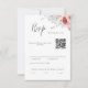 Elegant watercolor peach and soft blue floral RSVP card with chic calligraphy font.