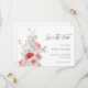 Elegant watercolor peach and soft blue floral save the date card with chic calligraphy font.