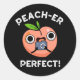 Peach-er Perfect Funny Peach Pun Dark BG Classic Round Sticker