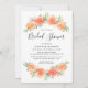Stylish and elegant bridal shower invitations featuring watercolor flowers in shades of peach and orange with lush green leaves complimented by a modern calligraphy font. The reverse side of the invitations features a peach watercolor background. Personalise the invitations by adding your shower details.
