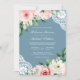 Peach Floral Lace Dusty Blue QR Code Wedding Invitation