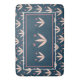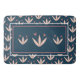 This bath mat has a border of peach florals, with red hearts. In the centre of the design, there's a solid navy blue rectangle that has a thin double border, made up of white and peach. On top of the navy rectangle there are three larger versions of the floral design. The background colour can be customised.