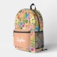Peach Floral Pattern Personalised Girl Name Printed Backpack