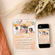 Beautiful party invitation for a "birthday bash" to celebrate a special birthday. In this example, we made it a 30th birthday, but you can easily change the headline text (in orange font) to read any person's name and any birthday year that you please. Bottom text is placeholder to hold your particulars. At the top we have room for three of your favourite photos of the birthday celebrant, their friends or anything else you want to put in there. Each photo has it's own frame to better set it off. Lovely floral design at the very top and a peach watercolor background on the front and a sand watercolor background on the back. This makes a cool digital download too!
