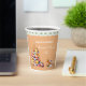 Celebrate in style with this personalised Bridal Shower Tea Party paper cup, perfectly designed for a charming tea party bridal shower. This whimsical design features a delicate floral teapot, a dainty teacup, and an elegant cake stand piled high with delicious cupcakes topped with soft pink and yellow icing and bright red cherries. Set against a soft peach background, the artwork is complemented by graceful white typography and elegant script fonts, creating a delightful and feminine touch. Ideal for the bride to be and her guests, this whimsical paper cup adds a sweet, sophisticated flair to any bridal shower tea party.