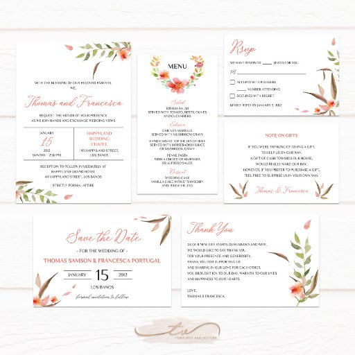 Peach Floral Watercolor Wedding CollectionDesigned by Glaiza Legaspi