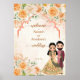 Peach flowers cute Indian bridal couple personalised welcome sign.