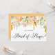 Ask your friends and family to be a part of your wedding with this floral "Will You Be My Maid of Honour" flat card featuring watercolor peach flowers with gold foil leaves accents and elegant calligraphy script. Matching items are available.