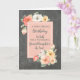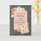 Pretty and thoughtful greeting card for your granddaughter in law's birthday with peach pink and white spring flowers, rustic chalkboard pattern and hand lettered style text.
