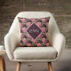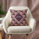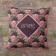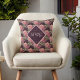 Peach Flowers on Purple Diamonds Monogram Cushion