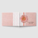 Rustic chic wedding guest book done in a peach coloured burlap look. Graphics of white lace, a satin looking peach coloured ribbon and a big peach Gerber daisy bloom, decorate the left front of the book. Personalise the text fields for your special day.