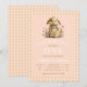 Invite family and friends to a day of hopping fun with our "Somebunny is Turning One" birthday invitation! This charming design features a sweet watercolor baby bunny holding a glass jar filled with vibrant wildflowers. The central design is beautifully framed by a classic peach and white gingham check border.