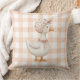 This charming throw pillow features a delightful watercolor design of geese in a classic gingham pattern, perfect for adding a touch of soft, whimsical style to any child's room or nursery. The pastel peach color creates a warm and inviting feel, making it a lovely and cozy accent piece.