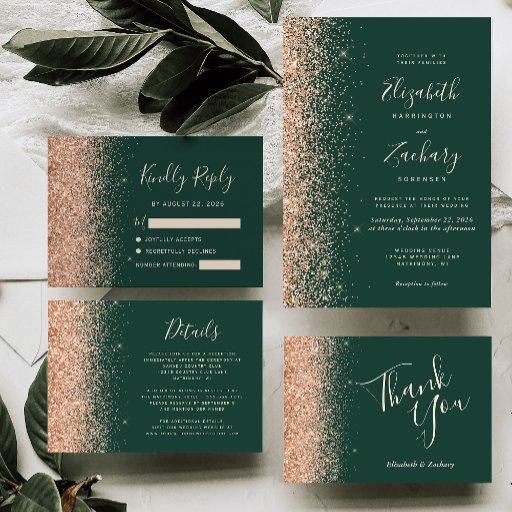 Modern Peach Glitter Emerald Green Wedding SuiteDesigned by Akhates Designs