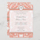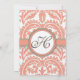 PEACH Victorian Vintage Damask Heart Wedding Seal Coral & Grey Damask Wedding Invitation shown on Round Card but can choose Square Card.