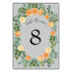 Peach Grey Wedding Spring Floral Table Number
