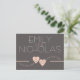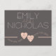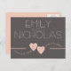 Peach Hearts over grey modern save the date postcard that you can customise with your own names, date and text.