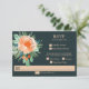 Elegant watercolor of flowers in shades of peach to orange trimmed with teal to jade green foliage with RSVP and menu selections in chic pale peach lettering. Change the teal background to anything to match your wedding theme. MATCHING items in our collection.