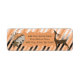 Peach Jingle Bells Stripe return address labels with a peach, coral, and chrome diagonal stripe background, brown silhouette deer, ornament, jingle bell, and a coral frame where you can add your name and address before ordering. We have the matching greeting cards, stickers, postage, and envelopes!