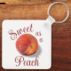 Show your love for summer with this peach theme keychain. This velvety, sweet peach design features warm and bright tones of blush, scarlet, amber, coral and lilac. Personalise by changing or removing the text. I created this pattern from an image in my original acrylic painting.