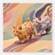Transform your space with our Peach Lavender Cats Fun Playful DIY-Friendly Peel and Stick Wallpaper! Inspired by Kandinsky's whimsical style, this captivating design features colourful cats in soft pastel hues. One cat is in a warm peach tone with a circular pattern, while the other is in a soothing lavender shade with a wave-like design. As they bound playfully, they leave a trail of vibrant colours against a harmonious pastel background. Easy to apply and remove, this wallpaper brings a sense of tranquillity and joy to any room.