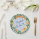 Peach Light Blue Wedding Roses Floral Paper Plate
