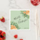 Peach & Light Green Peony & Rose Floral Wedding Napkin