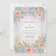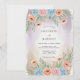 This artwork presents a soft and romantic watercolor aesthetic featuring peach poppies, pink roses, and blue hydrangeas. The floral elements are complemented by sage green foliage and set against a dreamy background of lavender and tan washes. This ethereal design captures a vibrant and artistic spirit perfect for a seasonal spring floral theme.
