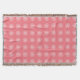 A quality printed throw has its advantages. This is a much finer weave throw than its loopier cousins, and though lighter, it is worth the investment for custom room accessorizing. The back is much prettier than the typical brown, and the fringe on the long sides very vivid, the selvage nicely done. Before photographing, I washed the throw in cold water, delicate, with a thicker woven throw the same size. On tumble dry low, this throw was dry in half the time as the other. This is a very practical quality if you use throws for furniture covers or to wrap up in frequently. The sleekness of the fabric makes it a great layer for accenting or protecting without the feeling of sitting on too much stuff. Perfect for napping or when you feel a light chill coming on. The color printing is beautiful and on this fabric, matched the design and color of my Photoshop image. This is an advantage for blending room fabrics and colors. The fringe on the short sides prints the colors from the design image and therefore varies from the side fringe. I streaked a white fractal line through the plaid pattern to give the illusion of weaving. This printed as crisp as an illusory thread, and put some white in the short side fringe, showing another advantage of print vs loomed- for artistic purposes, line lines, detail, and color integrity can be planned and preserved. My loomed throws have color limitations and more of a needlepoint texture. Print throws reproduce an exact image. The throw felt a little stiff straight out of the package, but this went away in the first delicate wash. Of course I searched the wash water for ink or bleeding and there was none.