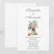 A lovely design, this wedding invitation features a floral peach mason jar design. There are templates in a beautiful green font. Customise your wedding invitations today!