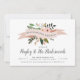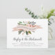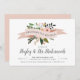 Celebrate your best girls with these chic bridesmaids brunch invitations. Design features a blush pink ribbon bearing the words "bridesmaids brunch" with peach flowers and green leaves peeking out. Personalise with your brunch details in inky off-black serif and calligraphy lettering.