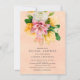 Beautiful floral bridal shower design featuring a gorgeous bouquet of peach, pink, yellow & white flowers set on a light peach background. Flip our design over to view a coordinating floral back for an extra special touch.