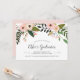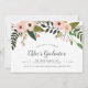 Vibrant floral graduation party invitation features a top border of peach and blush pink flowers and buds with cascading green botanicals. Personalise with your graduation party details in inky off black lettering, accented with chic hand lettered style calligraphy script.