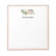 Chic personalised design features a posy of peachy blush pink flowers and green botanicals at the top, with your name or choice of personalisation beneath in hand lettered brush typography. A thin double border in matching blush pink completes the look.