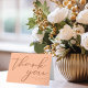 Our sweet peach wedding thank you cards feature elegant light brown script for a trendy, minimalist event in the afternoon. A personalised thank you card for a feminine bride who loves to stay current and modern.