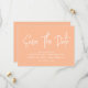 Modern calligraphy wedding save the date in a trendy peach colour with a digital scannable QR code for a website or contact information on the back. Available as a printed card or printable digital download.