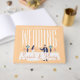 Capture the memories of your big day with this modern peach wedding guest book featuring a playful flat-style illustration of a couple raising a toast at their reception table with the bold word “Wedding” on the front. On the back, two doves carry a banner that reads “Love is in the air” (which you can customise to your own message). Personalised with the couple’s names and wedding date, this guest book blends fun, fresh, and minimalist design in peach, white, navy, and mint tones. A unique way to capture heartfelt wishes and memories at your wedding reception.