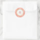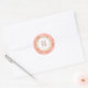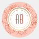 Elegant, botanical, floral peach wedding sticker with monogram - initials of bridew and groom and modern boho flowers lace.