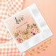 Delightful cocktail napkins for a spring or summer wedding reception with a peach-coloured ombre effect. Along the bottom edge is a garden of watercolor roses and greenery. Insert groom and bride's names along with the wedding date.