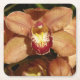 Peach Orchids with Raindrops Floral Square Paper Coaster
