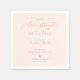 Elegant and minimal wedding napkins featuring a script typography font at the top that says "our love story" with a heart. You can add memorable dates of the couple's history and the couple's name. Peach background.