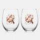 Peach Peony Bouquet Stemless Wine Glass
