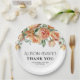 This elegant wedding paper plate showcases a delightful arrangement of beautiful peach peonies and sage green leaves. The couple's names are elegantly presented in a decorative font, providing a personal flair to the plate. A sincere 'Thank You' message is also featured, ideal for conveying appreciation to guests. The design is beautifully bordered with a fine line, elevating its sophisticated look and making it a charming element for any wedding event.
