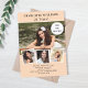 Create your own unique photo collage. Use four, 4 of your favourite photos. Personalise and add a name and party details. A peach coloured background, black text.