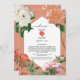 A beautiful watercolor peach and pink peonies flower wedding design with gold geometric frame. A unique design that uses vintage botanical peony florals in peach and pink colour tones. An elegant peach and pink peonies floral design with a dash of greenery. A chic gold geometric frame wedding Itinerary program design with modern elements. Matching wedding stationery items and other wedding invite formats are also available.