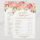 This peach & pink peony flower "baby word scramble" and "guess the right price" game is perfect for an elegant girls baby shower. The front of the game card features features "baby word scramble" and back features "guess the right price". The floral design features a beautiful arrangement of watercolor peonies in shades of blush and coral matched with dainty faux gold foil calligraphy. You can personalise the game questions by clicking the "customise" button.